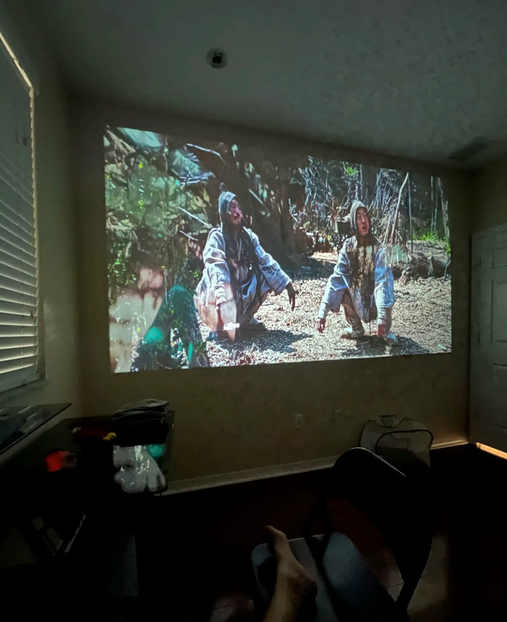 Mounting: works on a table, tripod (¼-inch thread), or ceiling mount. You can rotate 180° for ceiling projection—just flip the image in settings.